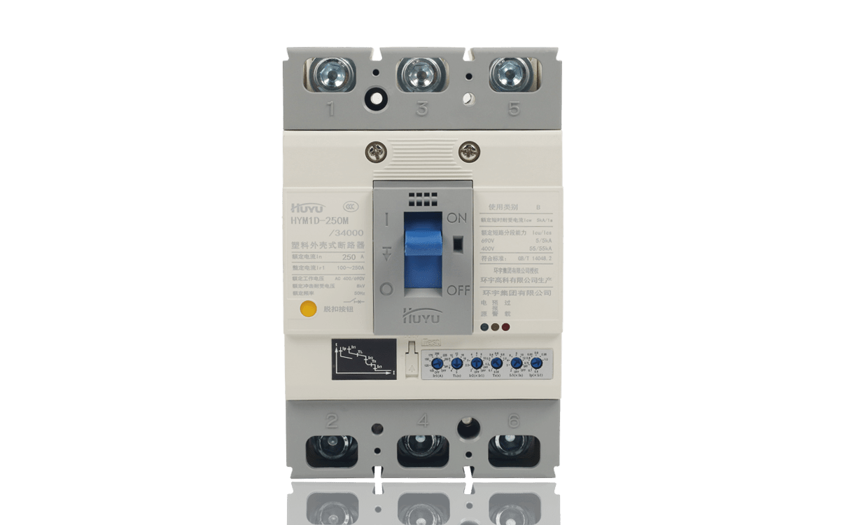 HYM1D系列電子式塑殼斷路器(以下簡稱斷路器)是本公司高新技術產(chǎn)品。該產(chǎn)品設計先進、性能可靠、技術指標高;外形美觀、體積小,采用了微電子技術,具有智能化過電流保護功能。該斷路器適用于交流50Hz、額定絕緣電壓1000V,額定工作電壓至690V、額定電流至800A的電力系統(tǒng)中,用來分配電能和保護線路及電源設備免受過載、短路、欠電壓等故障的危害,也可用來控制電動機的不頻繁操作。
